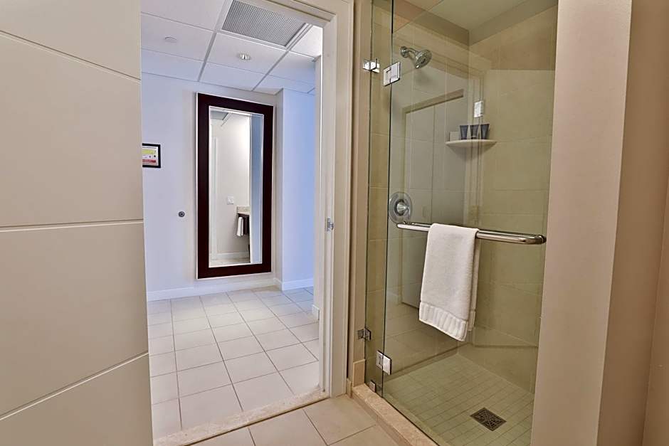 This room features a refrigerator, 42-inch flat-screen TV, and single-cup coffee maker.
